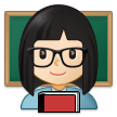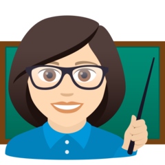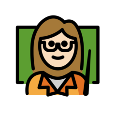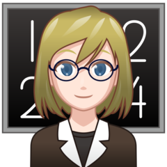 | Bendras punktas | U+1F469 1F3FB 200D 1F3EB |