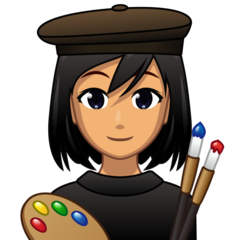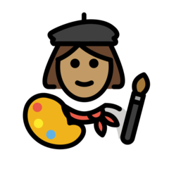 | Bendras punktas | U+1F469 1F3FD 200D 1F3A8 |