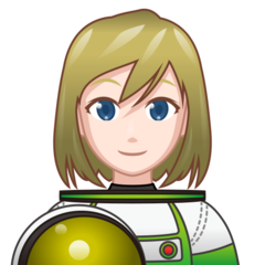 | Bendras punktas | U+1F469 1F3FB 200D 1F680 |