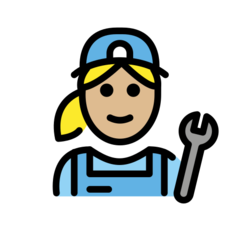 | Bendras punktas | U+1F469 1F3FC 200D 1F527 |
