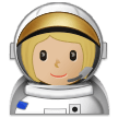 | Bendras punktas | U+1F469 1F3FC 200D 1F680 |