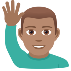 | Bendras punktas | U+1F64B 1F3FD 200D 2642 FE0F 1F64B - 🙋 žmogus, Iškėlęs Ranką 200D - Nulinio Pločio Stalius |