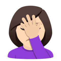 | Bendras punktas | U+1F926 1F3FB 200D 2640 |